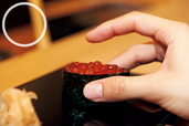 指でつまむ場合でも、箸でつまむ場合でも、寿司が崩れないように優しくつまむようにしてください。お皿に盛られた寿司はとても繊細で、崩れやすいということを知っておいてください。ですから、指でも箸でも、真ん中ではなく横からつまんで丸ごと食べるようにしてください。