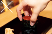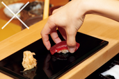 テーブルに着いたらすぐに、メニューからさまざまな種類の寿司をお選びいただけます。当店の料理に使用している食材は季節のものですので、メニューは季節に応じて変わります。どちらの方法でも、1回の注文につき20種類の寿司を選ぶことができ、一口ごとにユニークな体験をすることができます。当店では、ご注文をいただいてから職人がお寿司の調理を開始し、一貫ずつお召し上がりいただけます。すべてのお寿司に当店自慢のソースをかけてお出ししますので、お客様はただお料理を召し上がるだけで結構です。出来立てのお寿司は最高ですので、一品ずつお出しいたしますので、ぜひお召し上がりください。